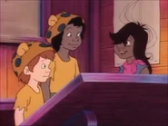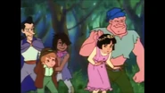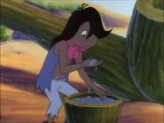 He is a short, dark skinned, young boy who is between 10 to 14 years old. He wears a pink bandana around his neck, a tattered blue vest and grungy looking pants. He has long black hair and his bangs seem to cover one side of his face. Sometimes he slouches or looks like a slacker as well.